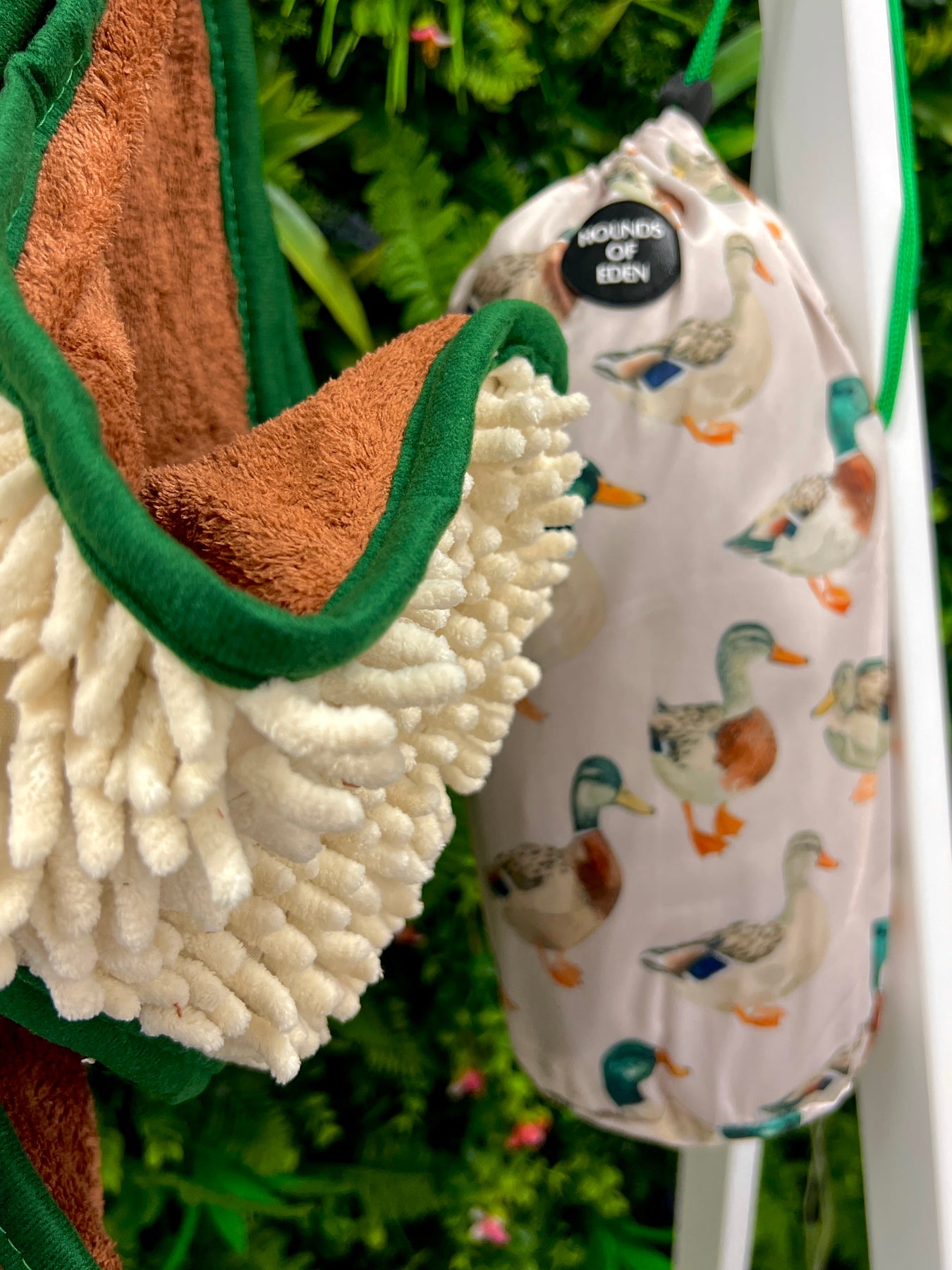 We can add these, so the towel stays on your pup more easily if you wish, creating a drying cape/robe. Please note, due to the size of the towel, we recommend this only for medium to larger breeds where the 105cm length of towel is accommodated with ease.