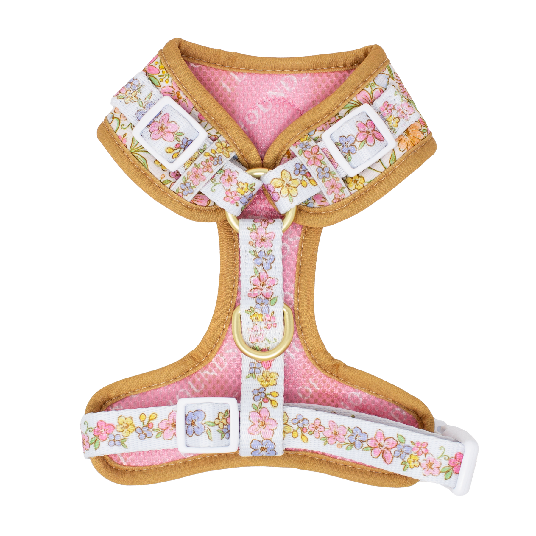 • Strong welded luxe brushed gold metal D-ring to match for lead or ID tag attachment.
