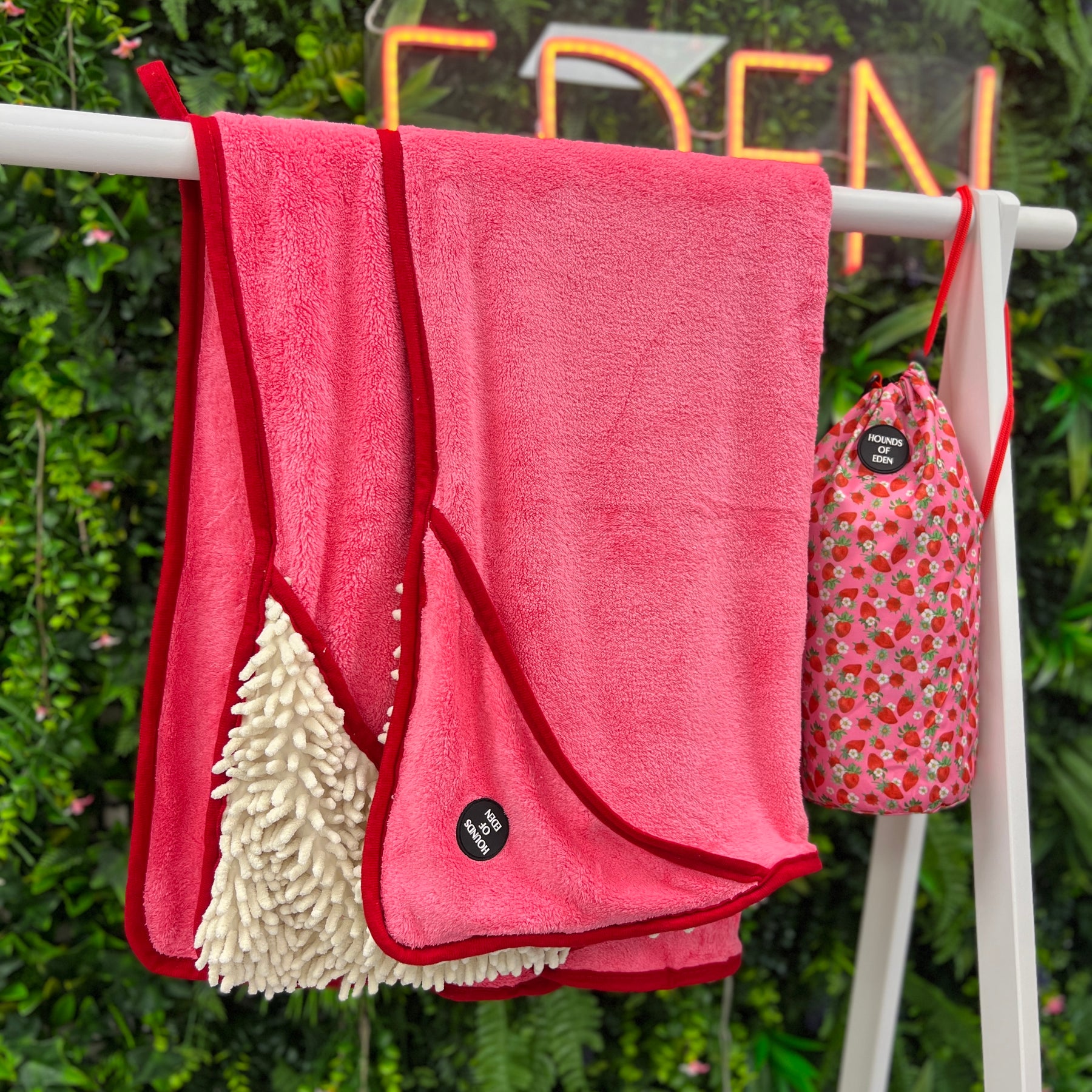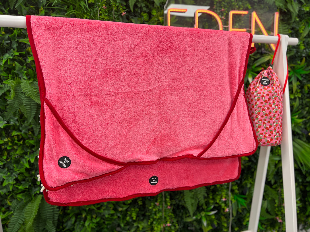 Strawberry Patch - Dog Towel + Carry Bag