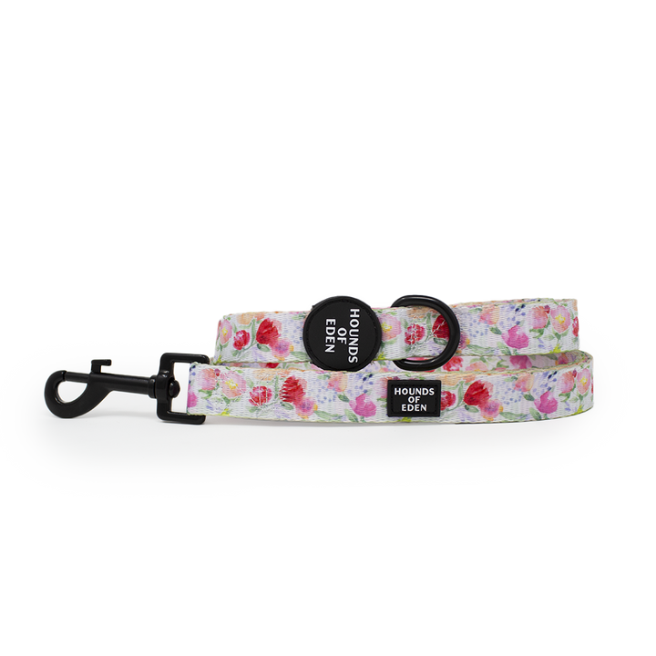 Artículos completamente a juego disponibles: collar, correa, arnés + soporte para bolsa de caca/golosinas.