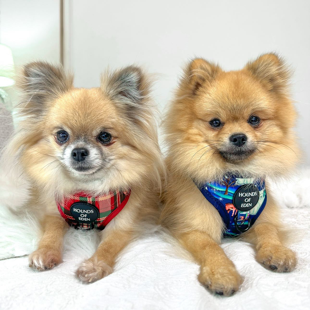 Artículos completamente a juego disponibles: collar, correa, arnés + soporte para bolsa de caca/golosinas.