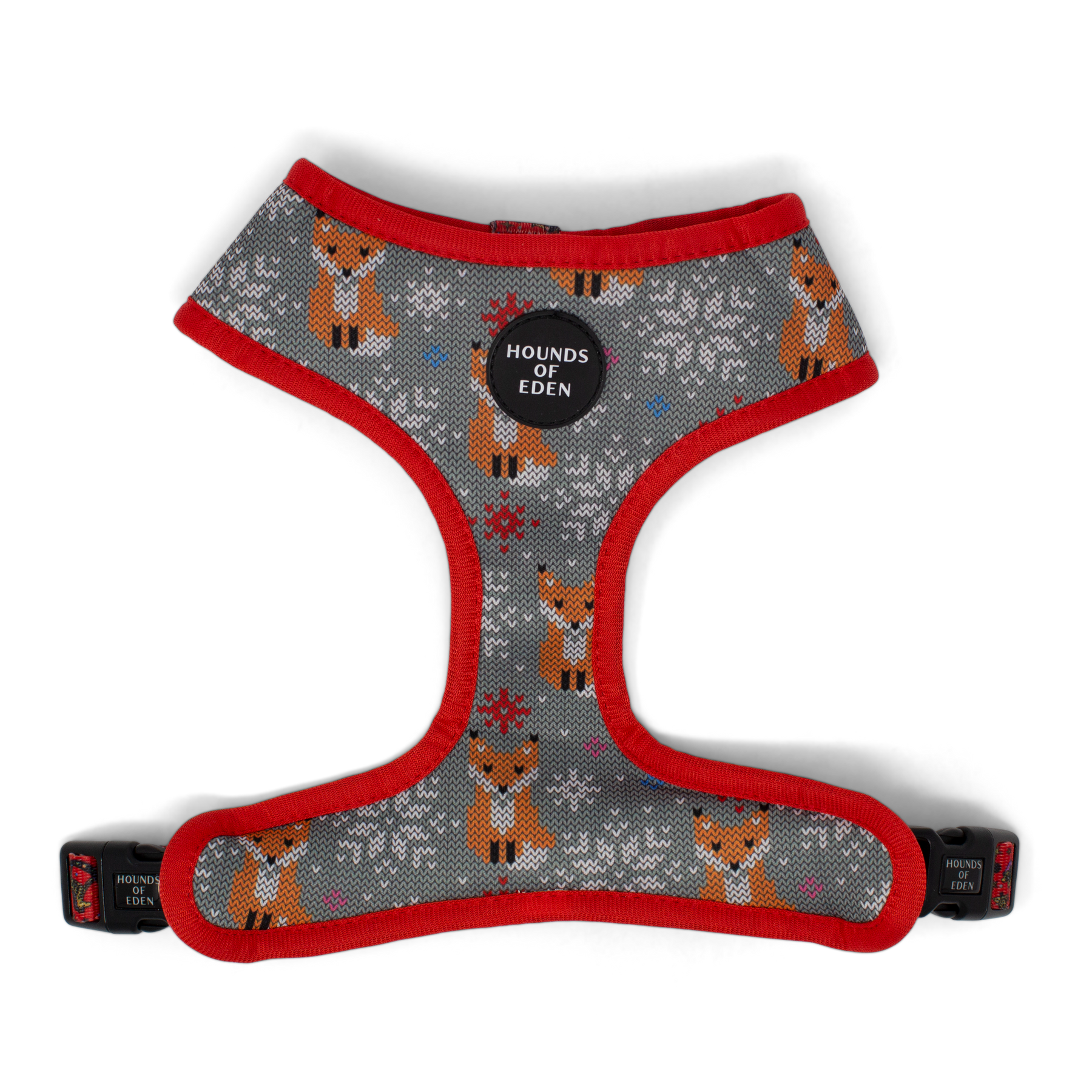 Eso no es todo... nuestro diseño inteligente no es sólo para la temporada festiva; simplemente invierta el arnés para revelar el diseño de jersey de invierno más PAWFECT de adorables zorros + copos de nieve en un gris neutro. ¡Perfecto para esos paseos fríos posteriores a la Navidad!