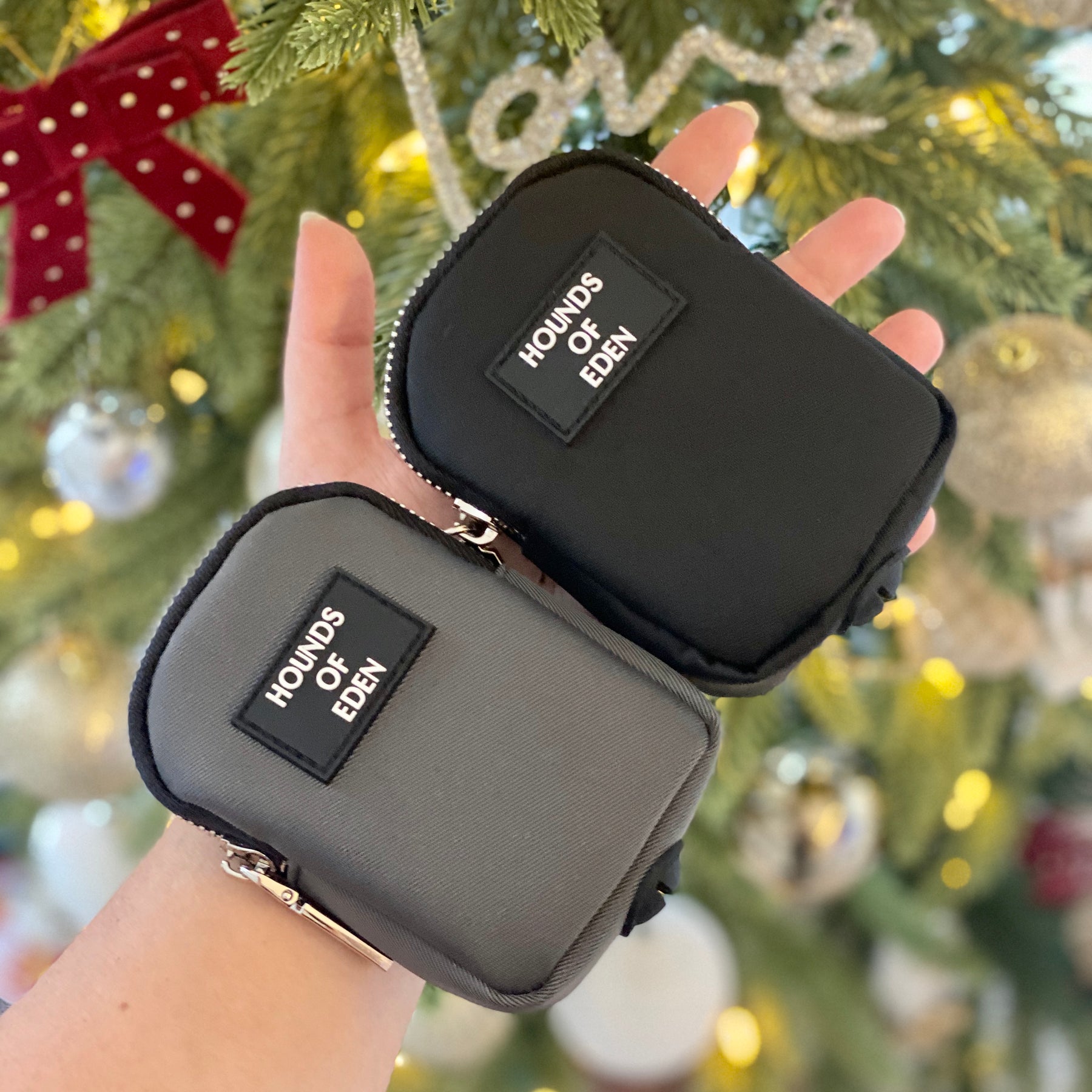 Una práctica bolsa pequeña y discreta con clip para golosinas y excrementos en uno, con herrajes plateados.