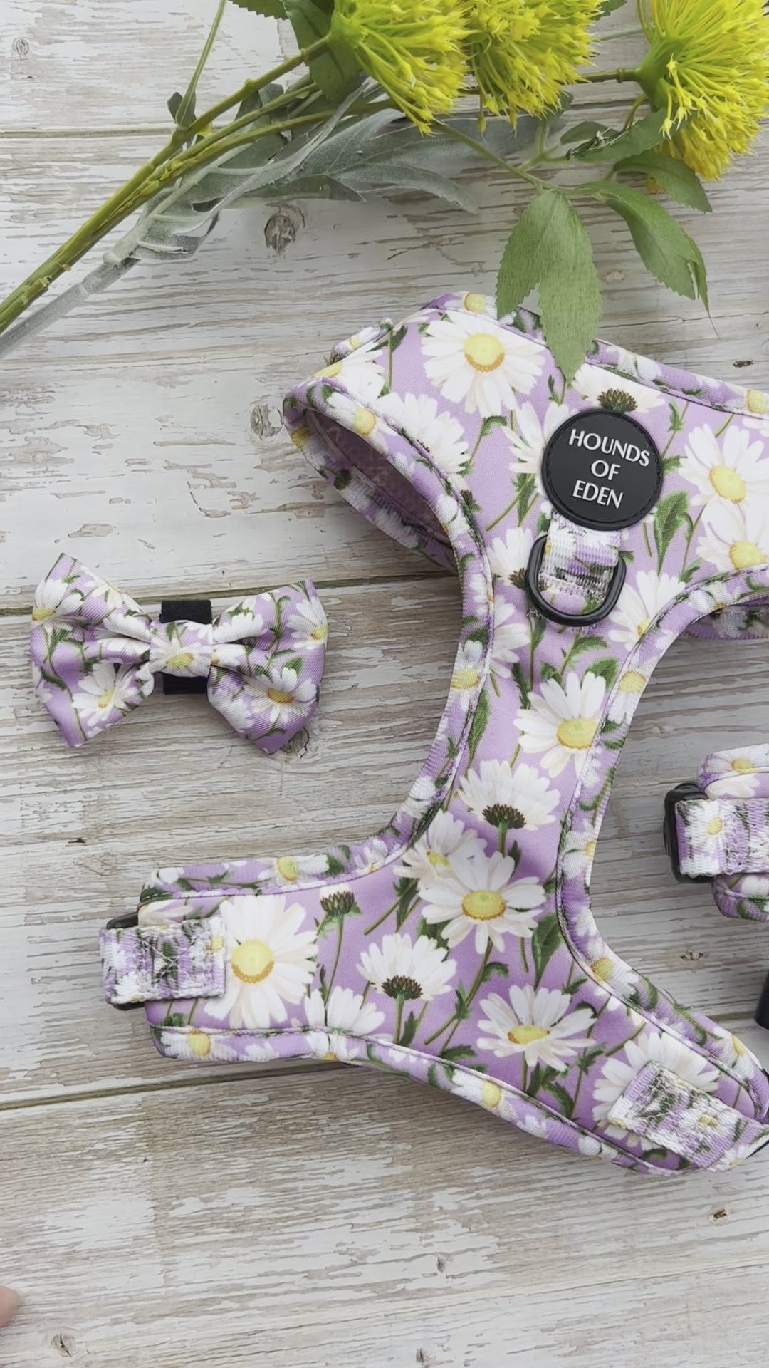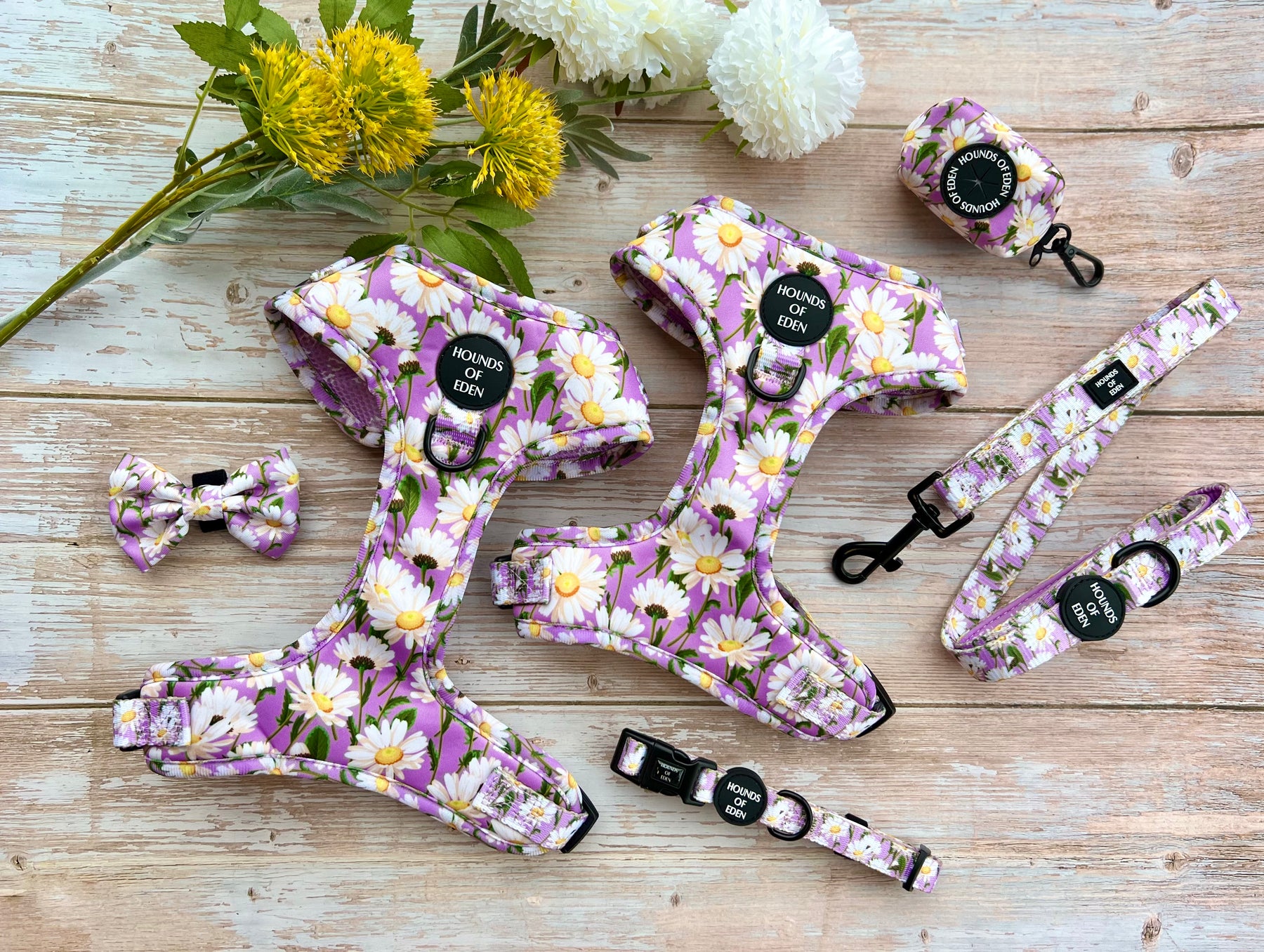 Artículos completamente a juego disponibles: collar, correa, arnés + soporte para bolsa de caca/golosinas.