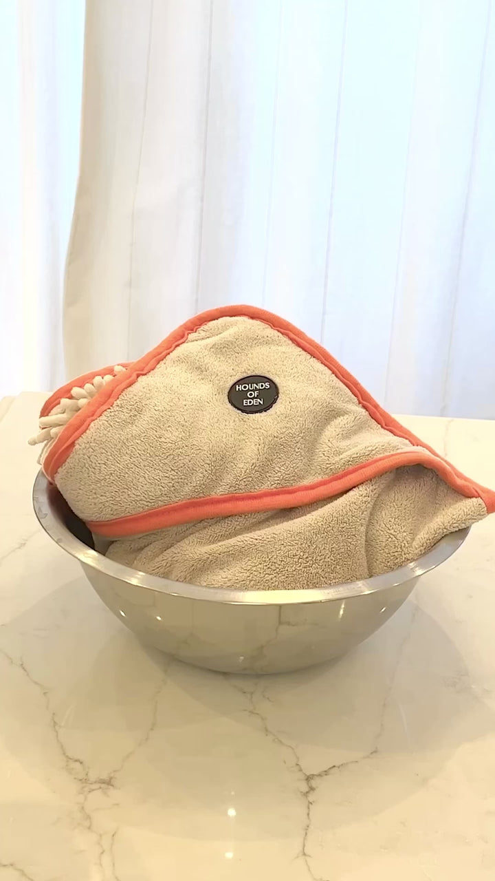 We can add these, so the towel stays on your pup more easily if you wish, creating a drying cape/robe. Please note, due to the size of the towel, we recommend this only for medium to larger breeds where the 105cm length of towel is accommodated with ease.