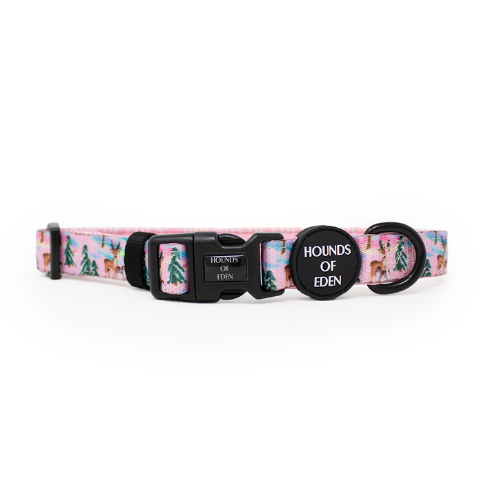 • Strong, lightweight black plastic quick-release Hounds of Eden branded buckle, contoured for a snug and comfortable fit on your dogs neck.